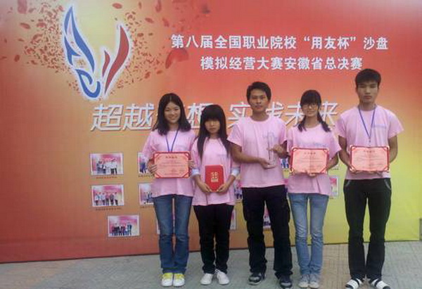 10月12日至14日,第八届全国职业院校“用友杯”沙盘模拟经营大赛安徽省总决赛在宿州职业技术学院隆重举行,我院管理工程系教师甘霖、杨学分指导的,赵家申、张克鄂、马长城、沈倩倩、贾娟娟五位同学经过两天的激烈角逐,最终以稳健的经营和大胆的策略在十六支代表队中脱颖而出,以第二名的优异成绩荣获一等奖。