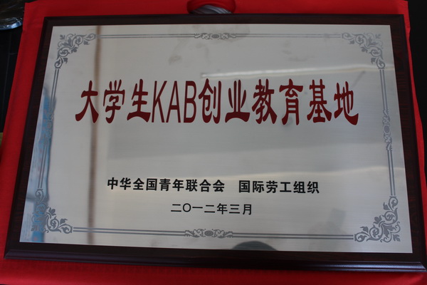 2012年,我院还被团中央等单位确定为“大学生KAB创业教育基地”,是全国61所高校的创业教育基地之一,我院大学生创业协会被授予“大学生KAB创业俱乐部”资格,我院朱小平、陆会娥两名老师被认定为KAB项目讲师。
