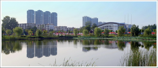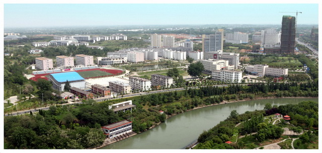 淠水弯畔的美丽校园与繁华都市交相辉映