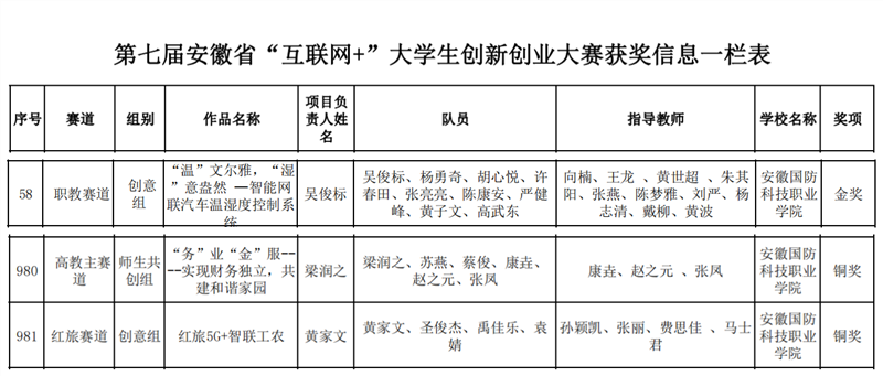 本网讯(校团委 缪灵)近日,第七届中国国际“互联网+”大学生创新创业大赛安徽省赛事告一段落,全省共6.5万余个项目报名参加。万象城官网三支项目团队通过层层选拔,在省赛中取得了优异成绩。其中,汽车技术学院比赛项目《“温”文尔雅,“湿”意盎然 —智能网联汽车温湿度控制系统》在大赛中荣获金奖,并顺利入围全国赛。信息技术学院的《“红旅5G+智联工农”》、城市建设学院的《“务”业“金”服----实现财务独立,共建和谐家园》获铜奖。
