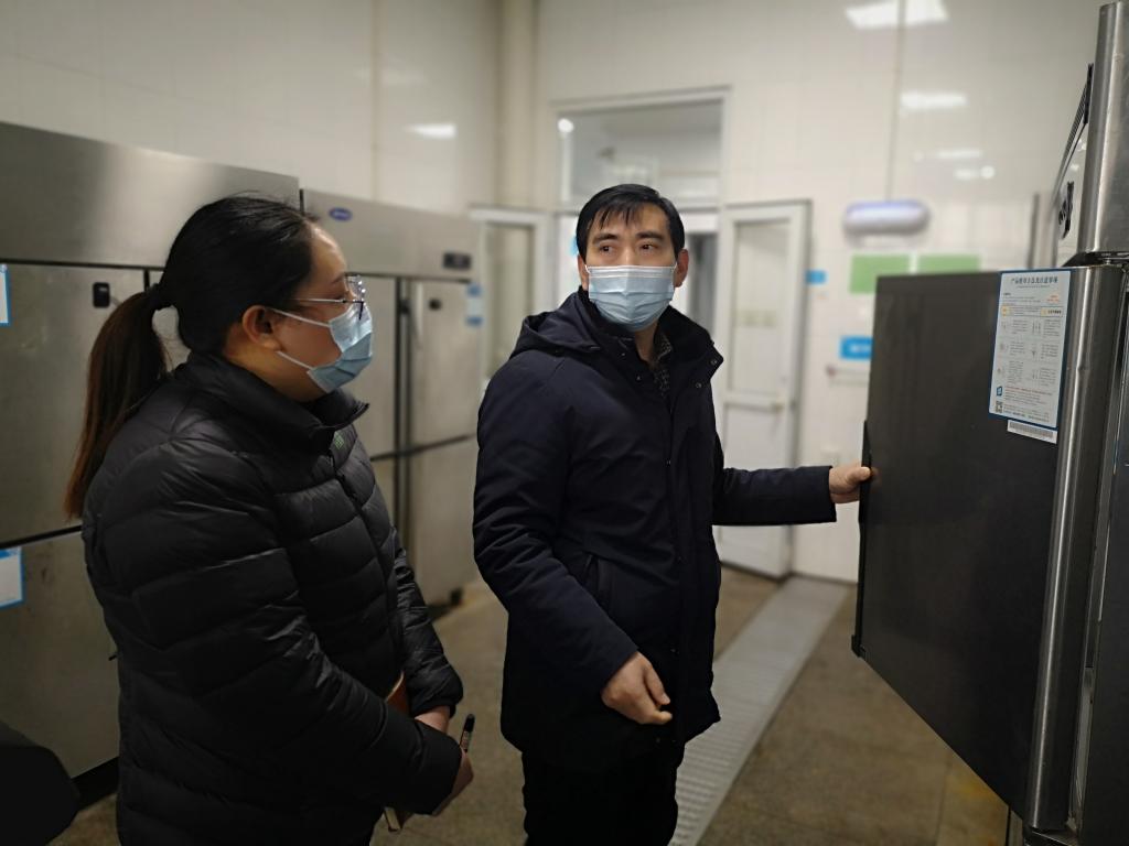汪宏春一行先后深入食堂后厨、物料库、消毒间等处,仔细查看食堂的食品经营许可证、从业人员健康证、原材料采购存储、进货台账记录,对食材加工、制作、留样、餐具清洁消毒等各个环节进行了全面细致地检查,详细了解学校食堂在疫情防控期间食品安全管控情况,了解了校园超市食品安全基本情况。
