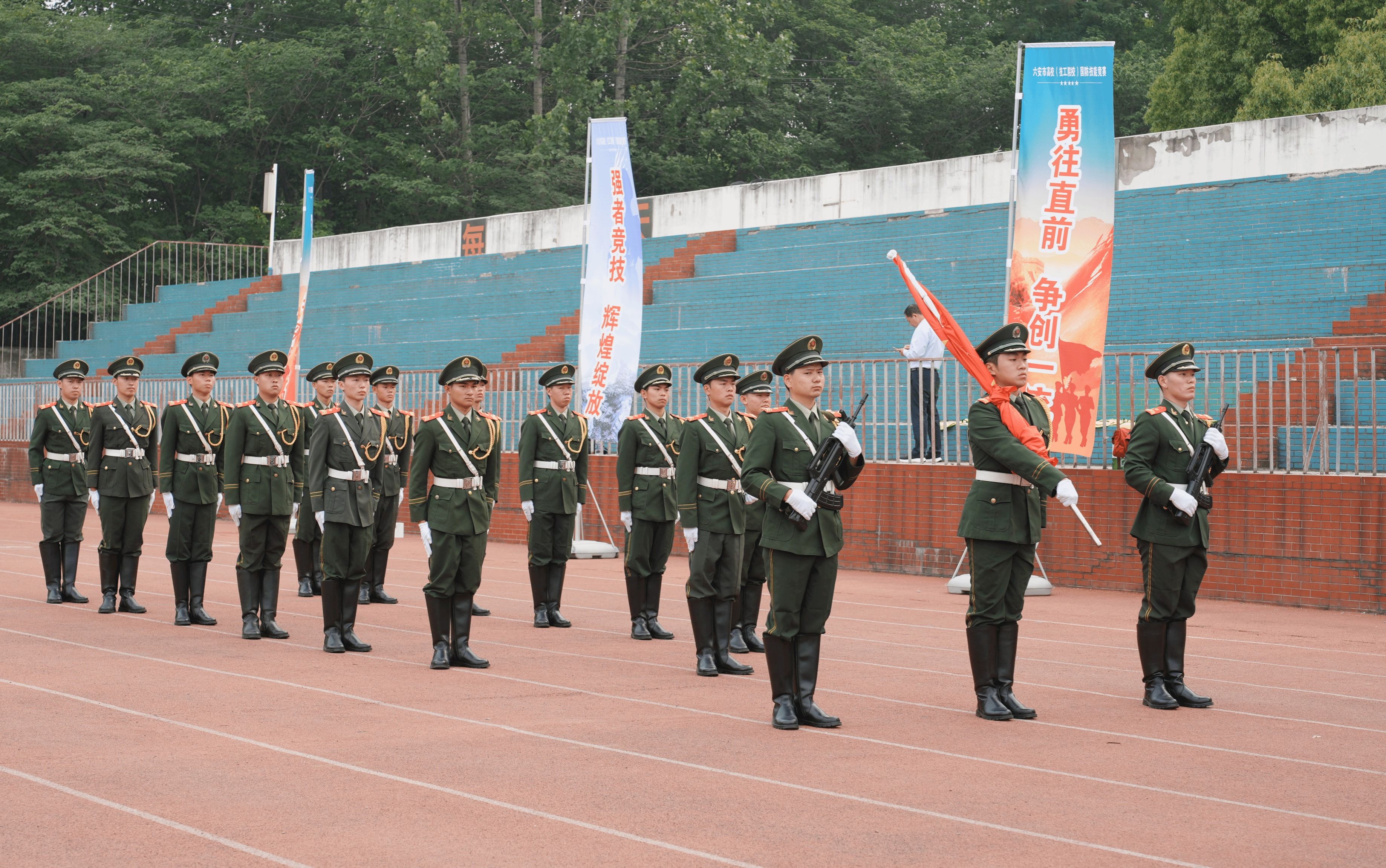 此次竞赛活动为期一天,分为国旗护卫队技能展示、无人机操作、基础体能、军事理论知识竞赛四个项目,来自皖西学院、万象城体育awcsport、六安职业技术学院、皖西卫生职业学院、安徽六安技师学院、安徽金寨技师学院6支代表队200余人参加了比赛。