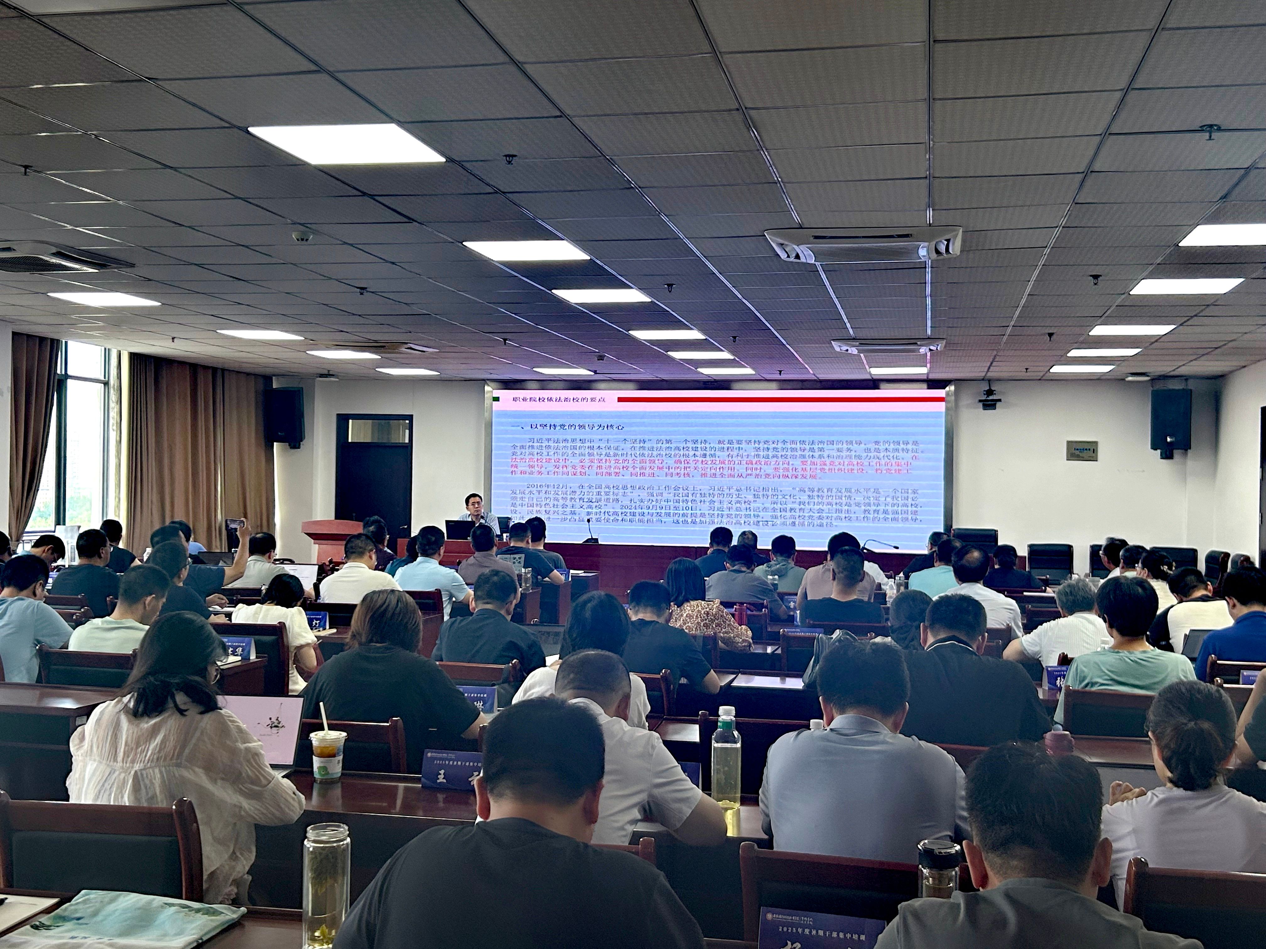 安全生产与依法治校专题培训中,安徽省交通控股集团原副总工程师兼安全监督管理部部长黄志福博士,围绕高校安全风险管控与应急管理展开讲授;中南财经政法大学文澜学者特聘教授侯卓,围绕职业院校依法治校和高校突发事件处置开展讲授,为推动校园依法治理和保障学校安全稳定保驾护航。