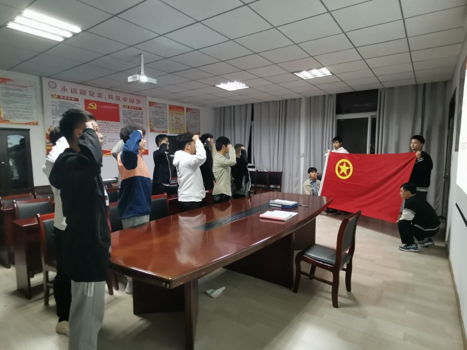 为积极落实上级关于从严治团的指示精神,充分做好团员发展和团员管理工作,10月22日晚18:00,汽车技术学院团总支在知行楼416会议室举行2021年度新团员入团宣誓仪式暨主题团课活动,宣誓仪式由团总支副书记严健峰同学主持,团总支朱其阳老师、全体委员及8名新团员参加本次活动。