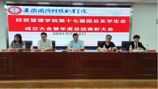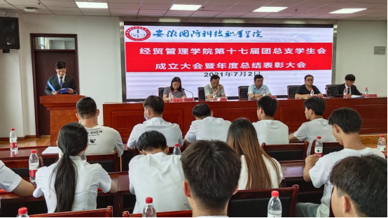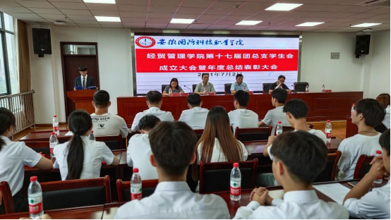 为进一步加强学生工作队伍建设,充分发挥学生会的自主职能,充实学生干部队伍力量,7月2日中午,经贸管理学院在秉心楼12楼会议室召开团总支学生会换届大会暨年度表彰总结大会。院党总支书记杜先杨、党总支副书记刘峰、副院长杨学分、院属各班学生代表近百余人参会,大会由团总支书记付玉梅主持。