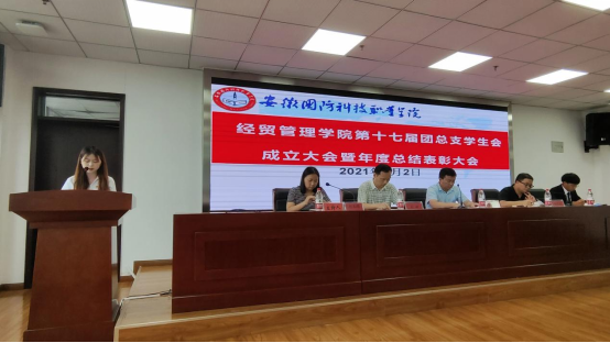 大会在庄严肃穆的国歌声中拉开了序幕,党总支副书记刘峰宣读经贸管理学院第十七届团总支及学生会任命文件。