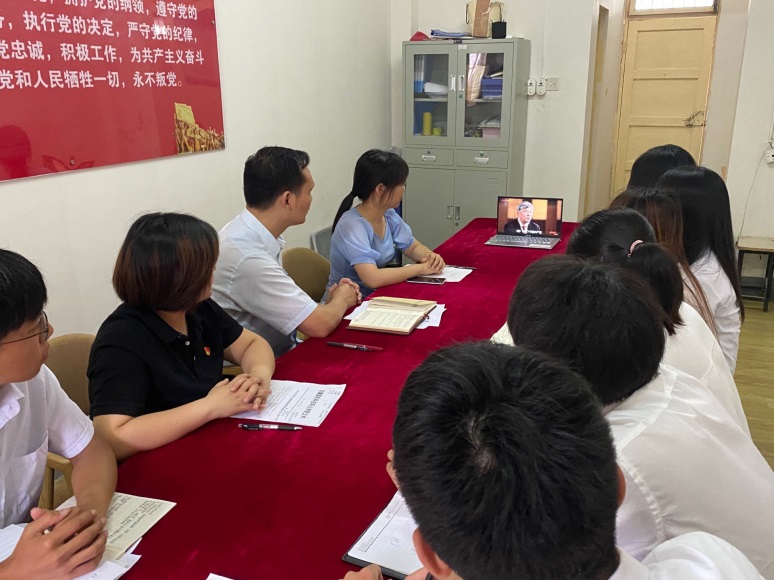 会上,党总支副书记刘峰领学了《论中国共产党历史》中“学习党史、国史是坚持和发展中国特色社会主义的必修课”内容。他指出,学史明理就是要明白中国共产党为什么能的道理,明白马克思主义为什么行的道理,明白中国特色社会主义为什么好的道理。刘峰强调,中国共产党之所以能,是因为有着科学的理论指导,有着坚定的理想信念,有着始终坚持以人民为中心的宗旨和奋斗目标以及强大的组织优势;马克思主义之所以行,是因为它具有科学性、人民性、实践性、开放性;几亿人脱贫、几天内建起雷神山、火神山、抗击疫情的阶段性胜利充分体现了中国特色社会主义的好。许风麟介绍了跟岗实习期间学生党员发展的相关要求,她要求学生积极与入党联系人联系,继续通过网络新媒体等手段加强政治学习。