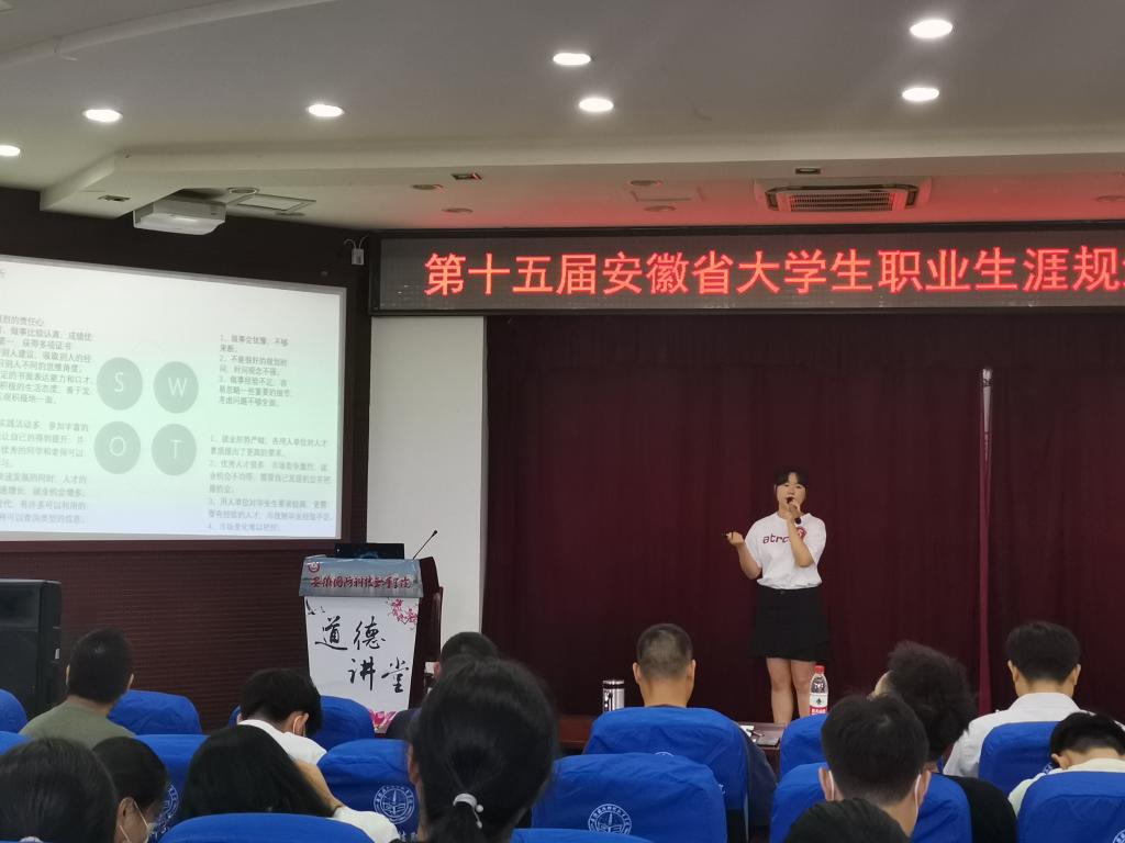为进一步提高大学生的职业生涯规划意识,培养学生的社会责任感和创新精神,引导同学们树立正确的成才观、就业观,以科学的态度规划自己的职业生涯,激发万象城官网学生的学习热情和学习动力,更好地备战第十五届安徽省大学生职业规划设计大赛,6月23日下午,由团委主办、校广播站、学生会承办的“规划精彩人生,放飞青春梦想”第十五届安徽省大学生职业规划设计大赛校园选拔赛在学校图书馆报告厅举行。学生处处长孙良平、团委副书记张红军、素质拓展中心主任雷雨担任本次大赛评委。