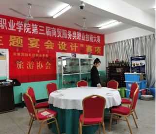 【旅游协会指导教师 丁辉】1月6日上午旅游协会承办学校第三届商务服务类职业技能大赛“中餐主题宴会设计”,本次大赛旨在为明年的安徽省技能大赛选拔后备选手,全体2020级新生参赛,由酒店专业的专业课老师担任评委。