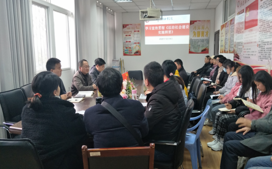 2020年12月9日下午,经贸管理学院组织全体党员和积极分子举办宣贯《法治社会建设实施纲要》专题党课。专题党课由校党委委员、副校长冯伦久主讲。冯伦久围绕《法治社会建设实施纲要》“总体要求、推动全社会增强法治观念、健全社会领域制度规范、加强权利保护、推进社会治理法治化、依法治理网络空间、加强组织保障”七个方面,并结合实际案例,进行了深入浅出的讲解。