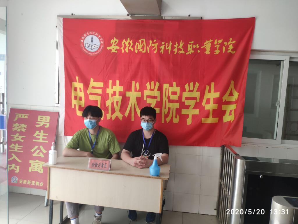 电气技术学院团总支学生会第一批返校学生,在经过自身的健康检测后,充分发挥了电气技术学院学生组织的力量,协助检查9栋宿舍楼出入学生的公寓出入证以及口罩的佩戴情况,帮助老师加强学生公寓每日巡查力度,及时反馈信息动态,进一步完善了学生公寓信息渠道建设。