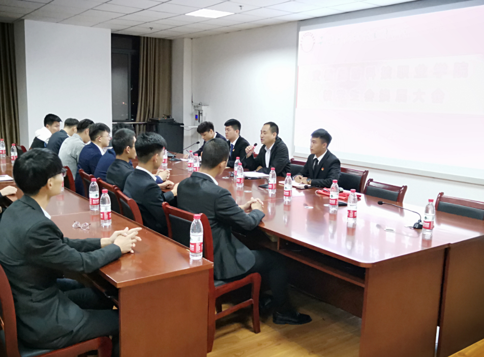 10月28日下午,校学生会在秉心楼902教室成功召开了2019-2020学年第一次全体例会。第33届校学生会主席团成员、各二级学院学生会负责人、各校级团体负责人及第34届校学生会全体成员参会,校团委副书记张红军参会。