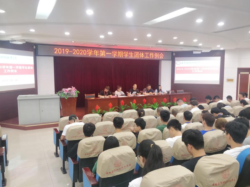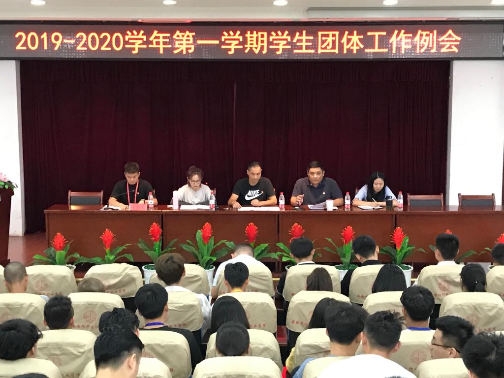9月4日,团委在图书馆报告厅组织召开了2019-2020学年第一学期学生团体工作例会。团委全体教师、基础部汪屿老师,校院两级学生会、广播站、大学生艺术团、团体联合会、各学生社团主要学生干部均参加了会议。