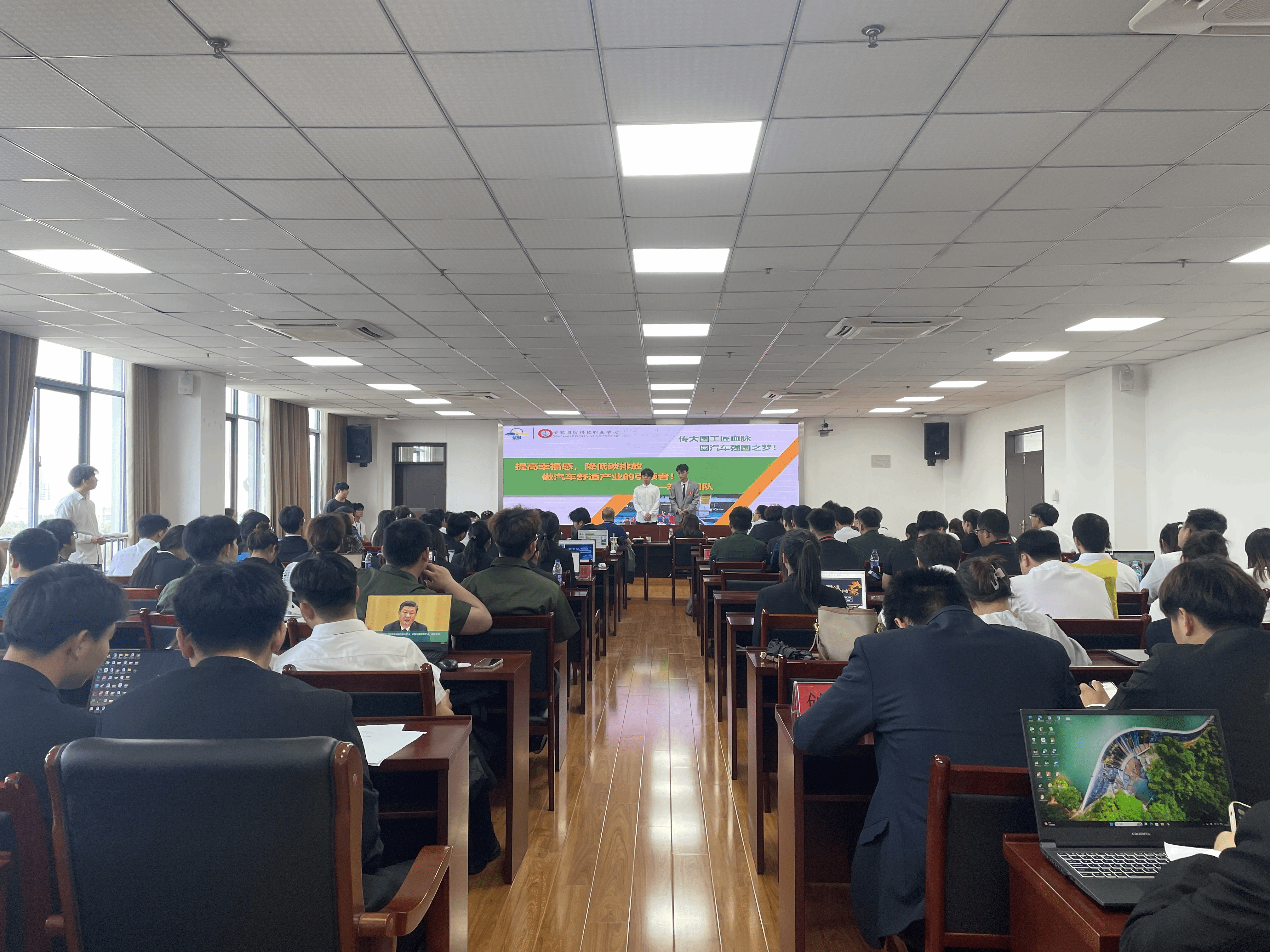 芳林新叶催陈叶,流水前波让后波。为贯彻落实党的二十大精神,“三位一体”统筹推进教育、科技、人才工作,把创新教育贯穿教育活动全过程,落实落细学校2024年工作要点中提出的“两个全覆盖”的要求,加快培养万象城官网创新创业高素质技能人才,切实形成“以赛促教、以赛促学、以赛促创”的浓厚氛围。5月22日下午,万象城官网成功举办2024年安徽省大学生创新大赛校级决赛。本次大赛邀请了5位中国创新创业大赛国赛评委担任点评专家,学校双高建设办公室主任韩玉龙出席会议,大赛由校团委副书记张凤主持。