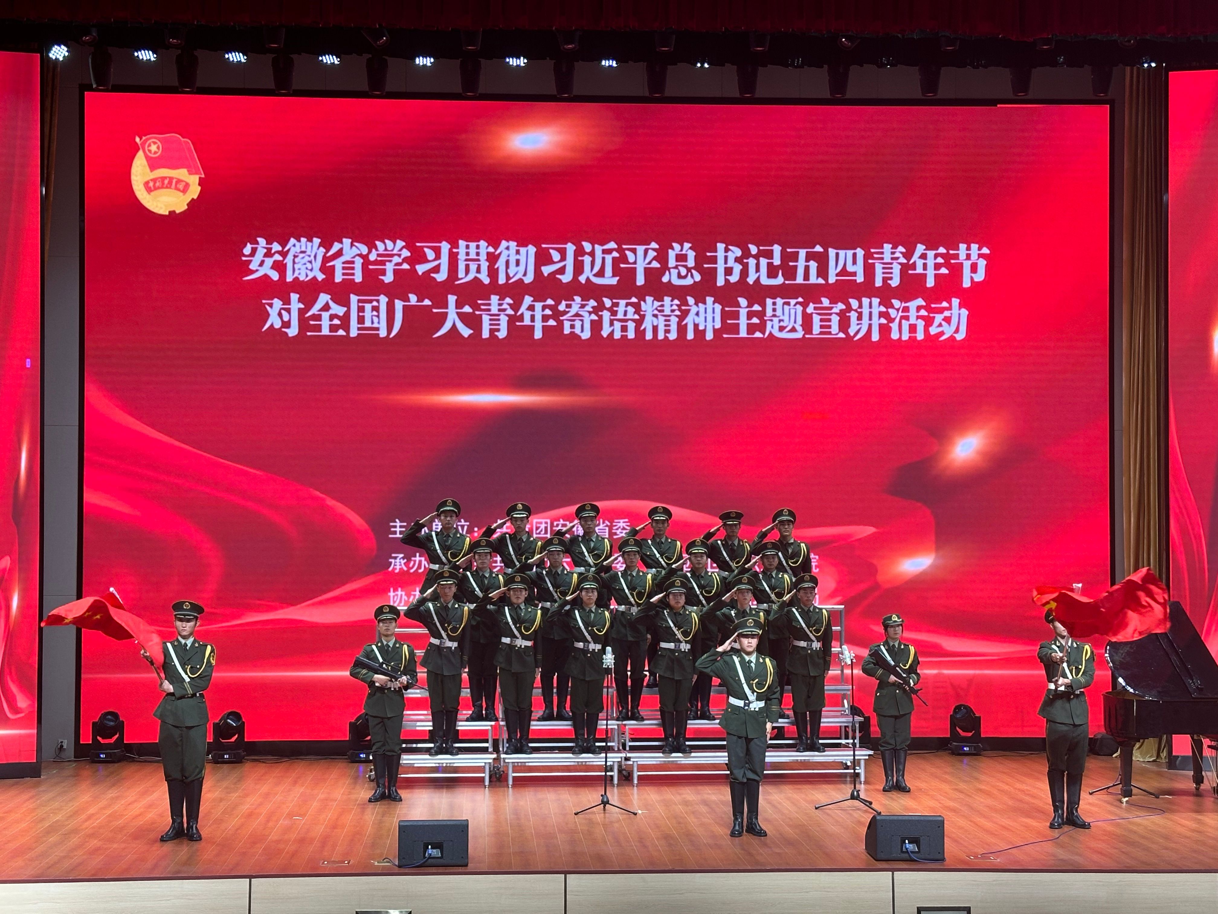 本网讯(学生通讯员 崔博旭)为深入学习贯彻习近平总书记五四青年节对全国广大青年寄语精神,引导广大青年为中国式现代化挺膺担当,由共青团安徽省委主办、共青团六安市委承办的“安徽省学习贯彻习近平总书记五四青年节对全国广大青年寄语精神主题宣讲活动”在皖西卫生职业学院举行,万象城官网国旗护卫队受邀参演合唱《祖国不会忘记》,展现万象城官网学子的风采。借音乐之声,唱出国防最强音,也唱出国防人对祖国的深情。
