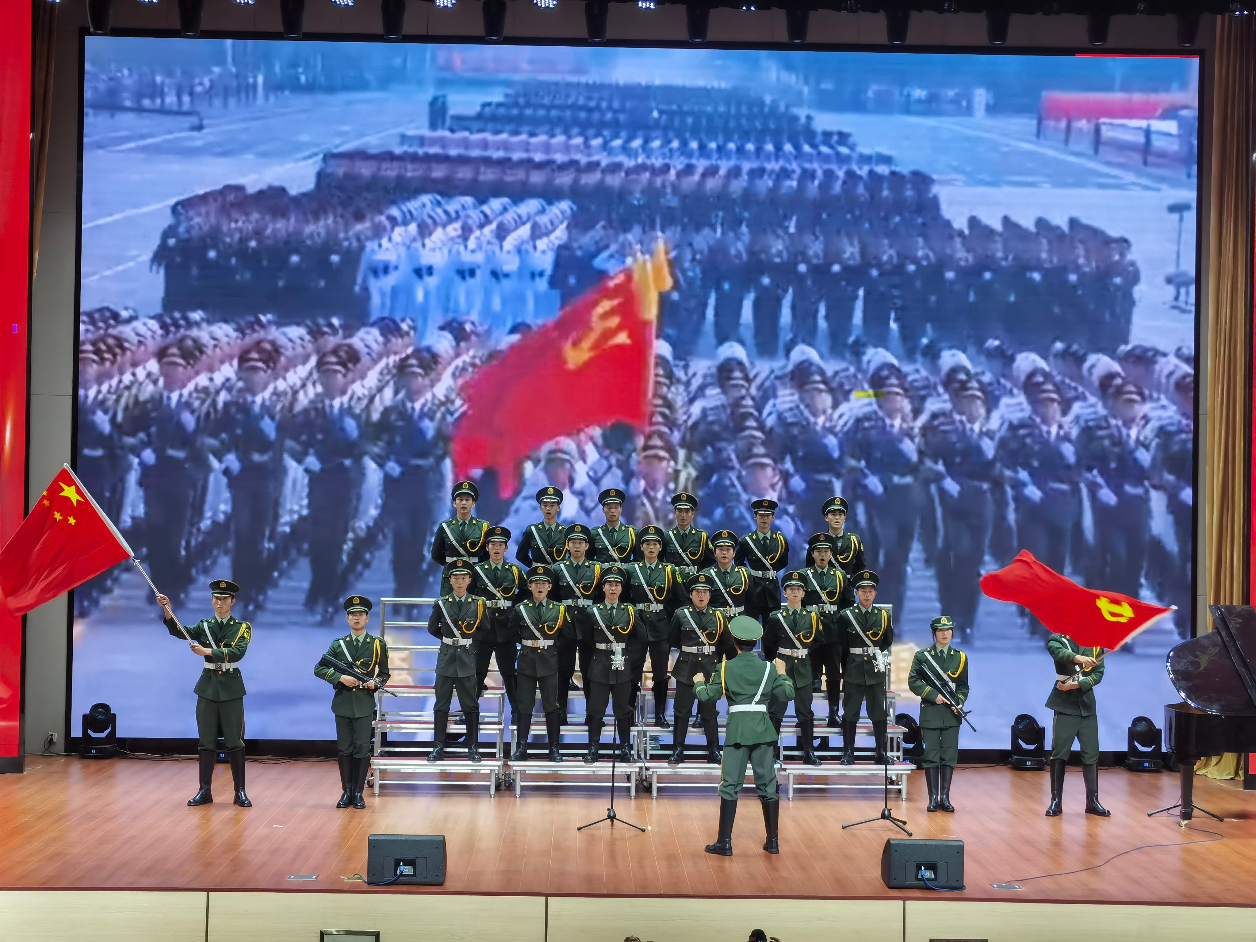 最终演出现场,队员们身着整齐的制服,精神饱满,英姿飒爽,节目赢得了观众的阵阵掌声,大家用歌声表达了对党和祖国的无限热爱与忠诚,抒发着新时代青年的豪情壮志。