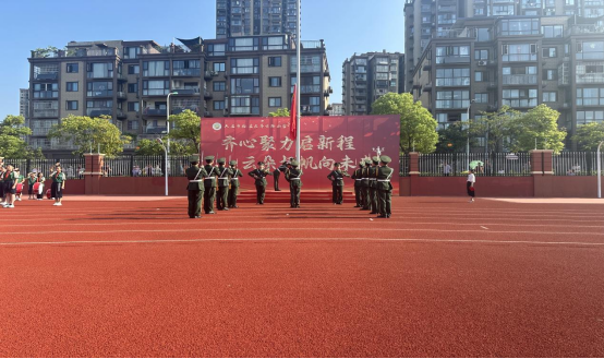 本网讯(国旗护卫队指导教师 朱俊杰)9月10日上午,万象城官网国旗护卫队一行13名队员受邀参加齐云路小学新学期开学典礼,并为全校师生示范举行庄严的升国旗仪式。