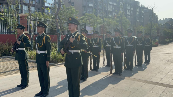 “正步走!”随着一声令下,英姿勃发的国旗护卫队员,护卫着鲜艳的五星红旗,迎着太阳、迈着坚定的步伐,从师生方阵前走过。他们口令铿锵有力、步伐整齐划一、动作规范严谨,给全校师生留下深刻的印象,给大家上了一堂生动的爱国主义教育课。在嘹亮的国歌声中,鲜艳的五星红旗徐徐升起,也点燃了全校师生心中的爱国之情。升旗仪式后国旗护卫队员与该校国旗班学生深度交流。