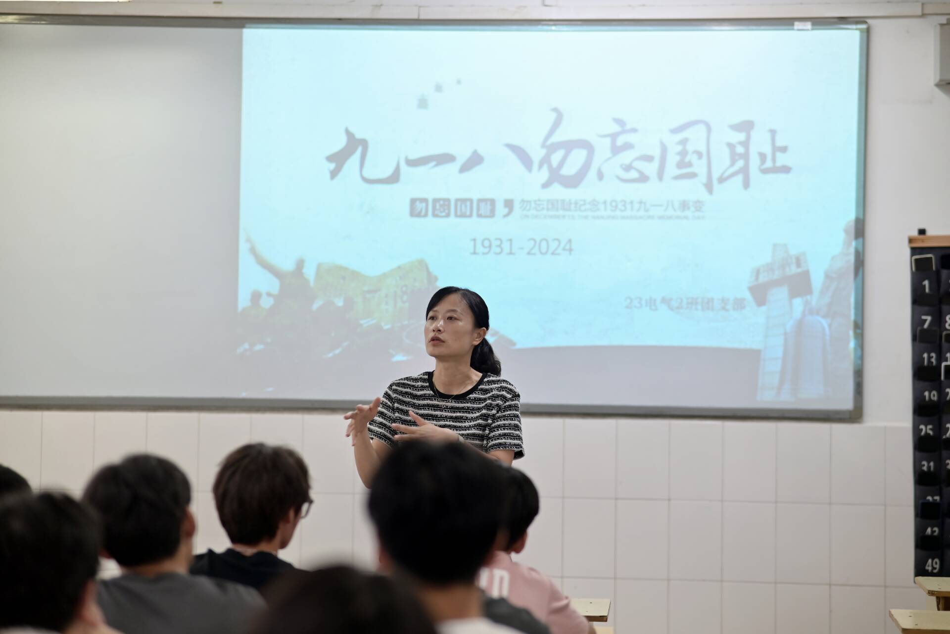本网讯(学生通讯员郑文静)为了引导同学们提升民族自豪感和历史使命感,厚植爱国主义情怀,坚定理想信念。9月12日,电气技术学院23电气2班在二号教学楼303教室开展“铭记九一八,勿忘国耻”主题团日活动。校团委副书记张凤出席活动,活动由团支部书记郑文静主持。