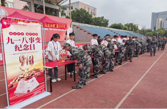 同学们在印有“铭记历史,弘扬先烈精神,实干担当,共筑中国式现代化强国梦!”横幅上郑重的签下自己的名字,以此表达“勿忘国耻,振兴中华”的坚定决心。
