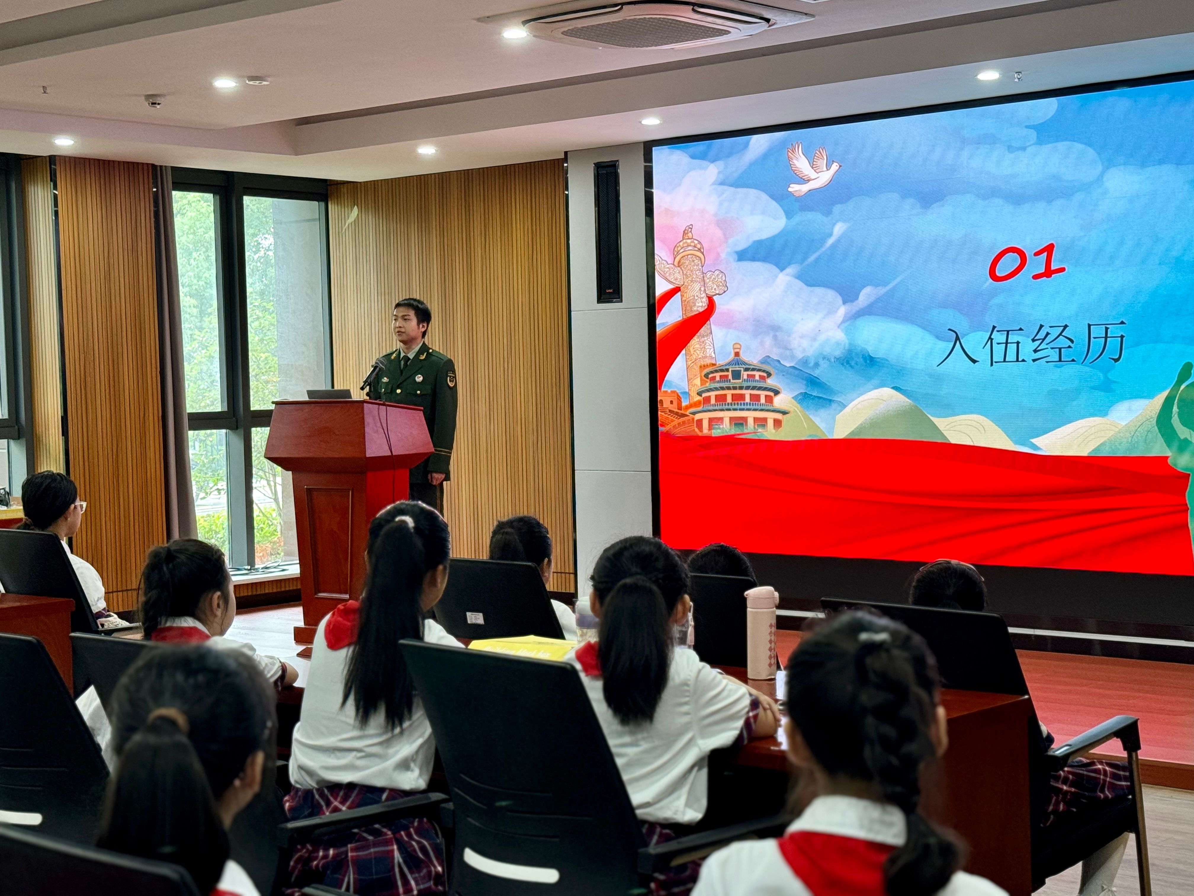 "孩子们,在你们心中,军人是什么模样?"在学校报告厅内,一场别开生面的"我的军营故事我来说"主题活动拉开帷幕。由优秀退役大学生士兵组成的宣讲团队,以真挚的情感、生动的语言,向少先队员们娓娓道来难忘的军营岁月。从摸爬滚打的训练日常到并肩作战的热血青春,一个个鲜活故事生动展现了军营中拼搏进取、团结友爱的浓厚氛围。现场掌声此起彼伏,孩子们的目光中满是钦佩,深深被讲述者坚毅果敢的精神风貌所打动。