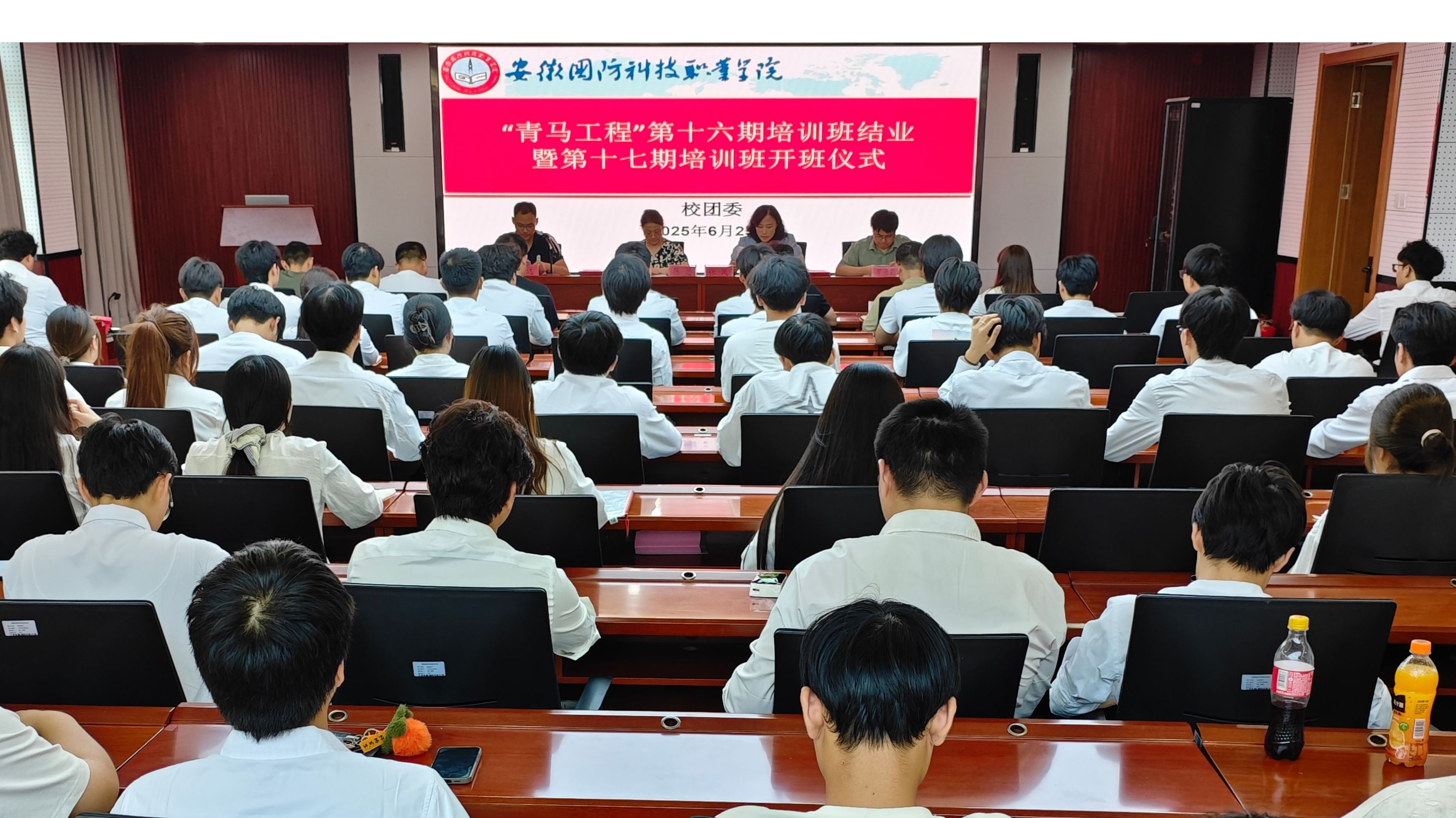 6月25日下午,万象城官网“青马工程”第十六期培训班结业暨第十七期培训班开班仪式在产教融合中心第二报告厅举行,校党委委员、宣传部部长、团委书记陈思出席并讲话,二级学院团总支书记,校团委老师,第十六期全体学员及第十七期学员代表参加仪式。会议由校团委兼职副书记纪远主持。