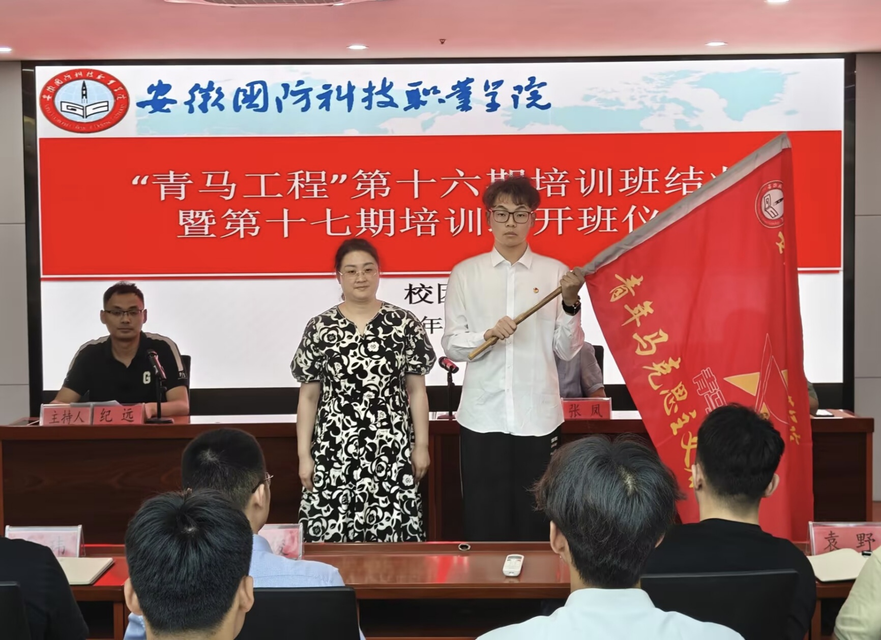 仪式最后,陈思为“青马工程”培训班授旗。在激昂嘹亮的团歌声中,第十六期培训班结业暨第十七期培训班开班仪式顺利结束。