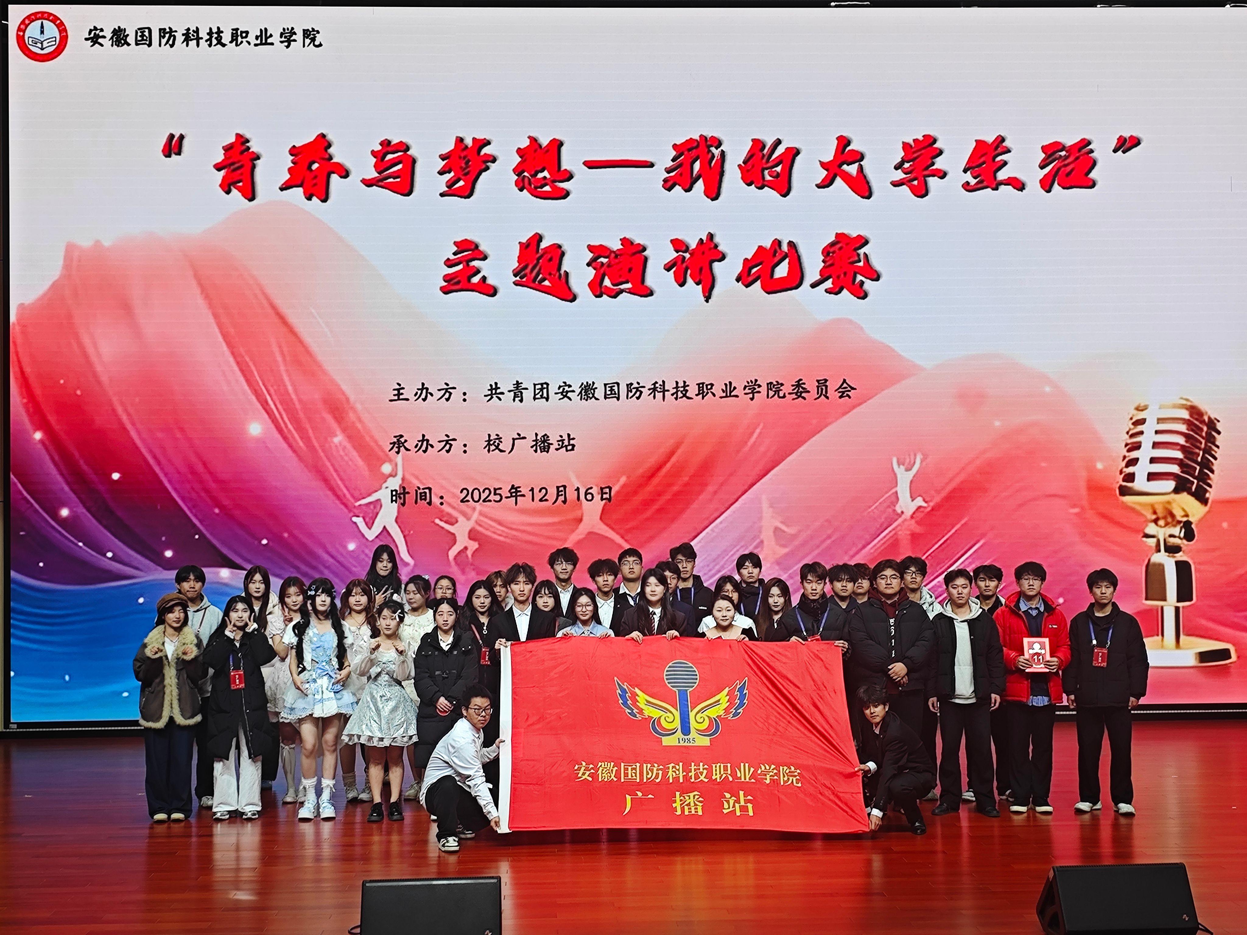 本网讯(学生通讯员 何星含)12月16日晚,“青春与梦想——我的大学生活”主题演讲比赛校级决赛在产教融合大报告厅圆满举行。本次活动由校广播站承办,近400名师生齐聚现场,共同聆听这场关于青春与成长的精彩分享。