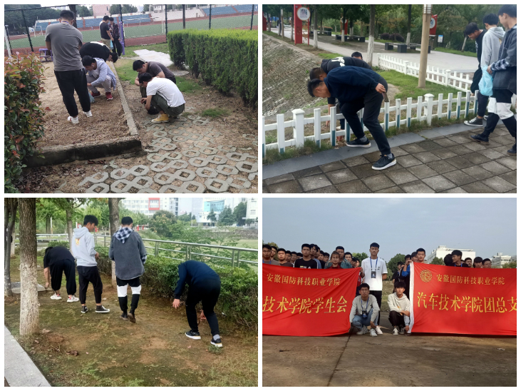 9月23日中午,汽车技术学院学生会组织志愿者来到校体育馆、篮球场和风雨操场周边开展助力创城志愿服务——义务大扫除活动。参加大扫除活动的同学们发扬了不怕脏不怕累的志愿者精神,对体育馆、风雨操场周边道路、花坛、草坪以及其他卫生死角的纸屑、落叶、烟头等垃圾进行了集中清扫,并把所有的垃圾进行集中分类处理。