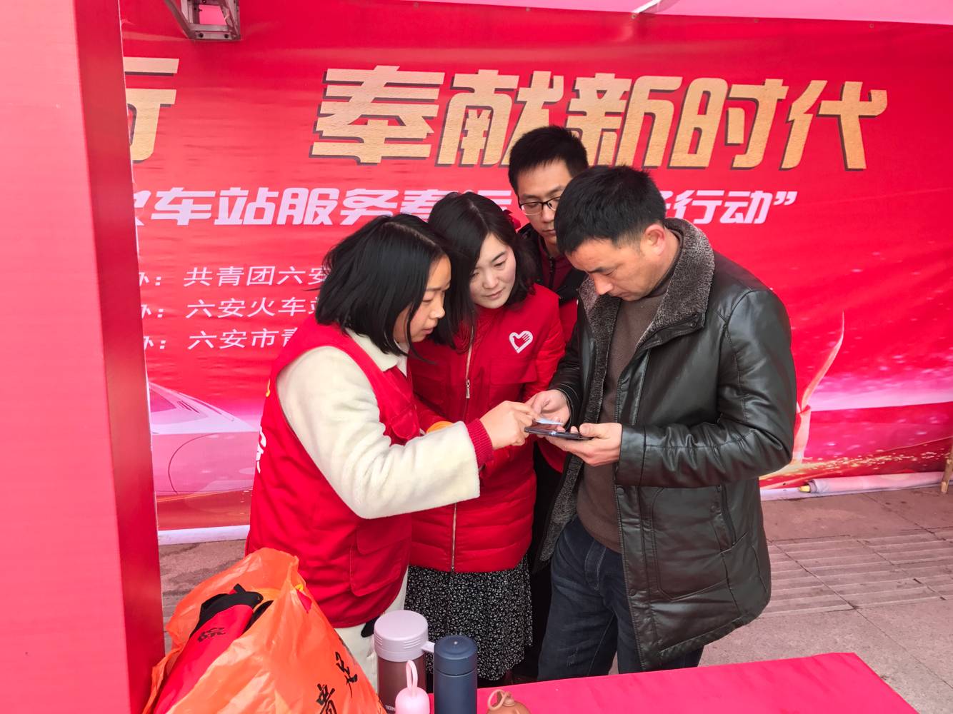 活动当天,志愿者们在火车站站前广场、售票厅、入站口出站口等地开展志愿服务活动,“红马甲”的忙碌身影随处可见。帮助返校学生解决学生证不能刷票的问题,使用自动购票机帮旅客买到了合适的火车票,提行李、指道路、倒热水、站好岗,志愿者们的耐心解答和周到服务帮助旅客们解决了问题,按时搭上火车,举手之劳拉近了距离,爱心问候融化了春寒。