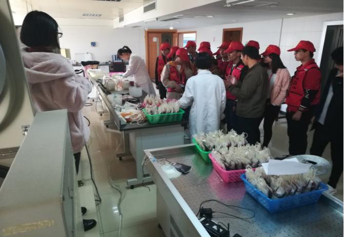 六安市中心血站对此次活动高度重视,安排中心专家为志愿者们进行了血液知识和无偿献血常识的解说,为大家释疑解惑,同学们仔细听讲了专家讲解并认真学习。接着,工作人员带领志愿者们参观了参观了血站体采科、待检科、成分科、检验科、储血科等业务科室,结合人体血液知识、《献血法》等相关政策法规,对血液的初筛检测、采集、分离、检验、储存到发放等一系列血液流程作了更全面深入的了解。