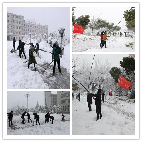 1月4日一早,学校领导和相关部门职工早早来到校园,利用铁锹、竹竿等工具在校园各处开展义务扫雪、除雪活动,为广大师生员工开辟安全通道,整个校园洋溢着劳动的热情和欢声笑语。