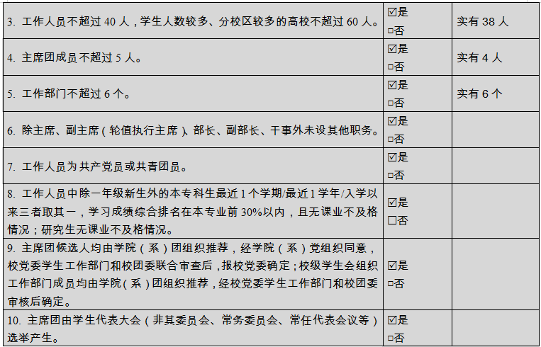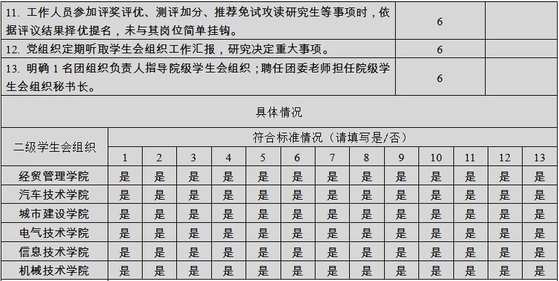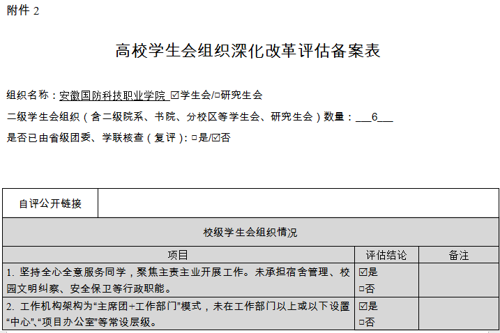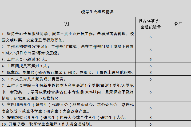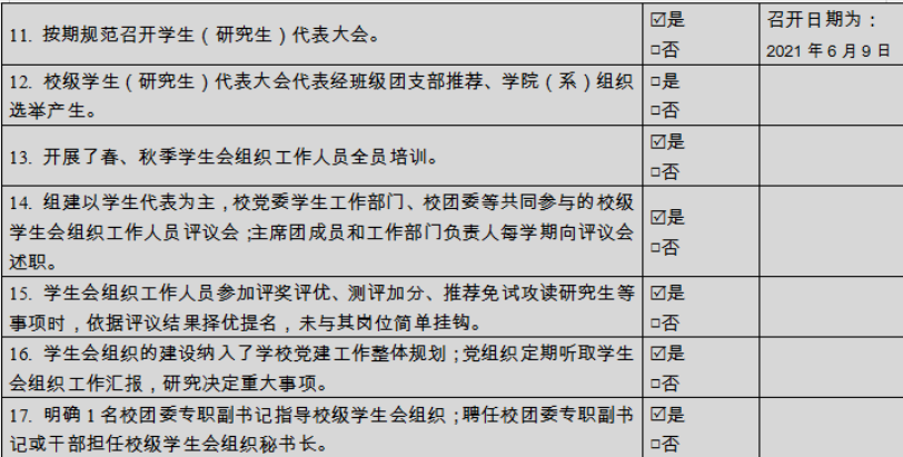 (二)二级学生会组织(含二级院系、书院、分校区等学生会、研究生会)改革自评表