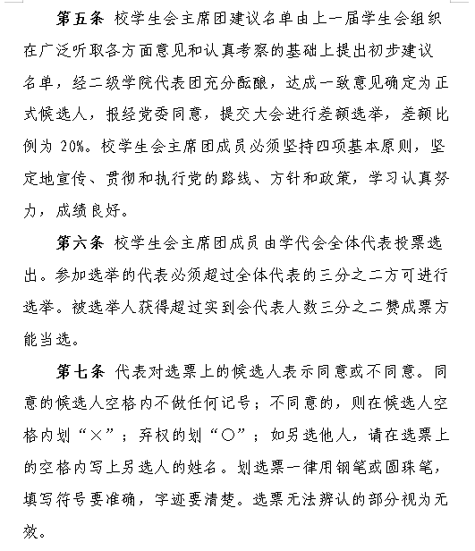 五、校级组织主席团成员候选人产生办法及选举办法