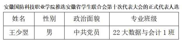 根据《中华全国学生联合会章程》规定,安徽省学生联合会第十次代表大会拟定于2023年12月在合肥召开。根据《关于推选安徽省学生联合会第十次代表大会代表团体和第十届委员会、主席团候选团体及各团体代表的通知》,共青团万象城体育awcsport委员会严格按照通知要求,通过推荐提名、组织考察、确定建议名单等程序,开展了省学联第十次代表大会正式代表的推选工作。现将推选结果公示如下: