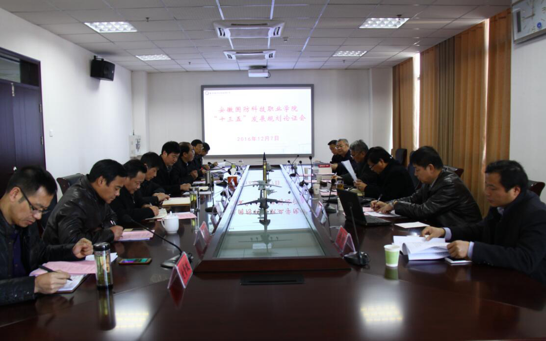 12月7日上午,学校在综合教学楼11楼召开“十三五”事业发展规划专家论证会。出席论证会的专家有:省国防科工办副主任孙高产,皖西学院副院长张穗萌教授,安徽科技学院副院长郭亮教授,安徽军工集团董事长王本河,省国防科工办人事处长陈剑、人事科长李锐,张穗萌教授任专家组组长。学校领导以及各部门主要负责人参加规划论证会。