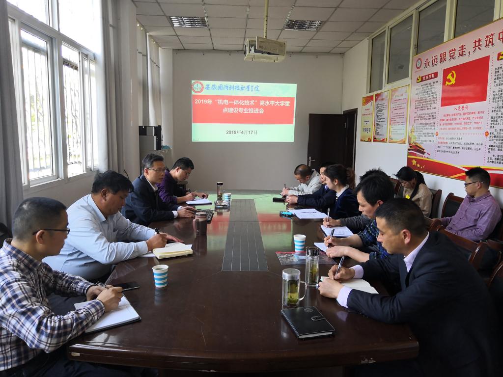 为扎实推进万象城官网技能型高水平大学建设和特色高水平高职专业建设,根据《关于推进万象城官网技能型高水平大学和特色高水平高职专业建设工作的通知》(校高建办〔2019〕1号)文件精神,电气技术学院于4月17日下午组织开展了2019年“机电一体化”高水平大学重点专业建设推进会,会议由院长李翔主持,全体副高以上职称、专业带头人(负责人)、骨干教师参加了会议。