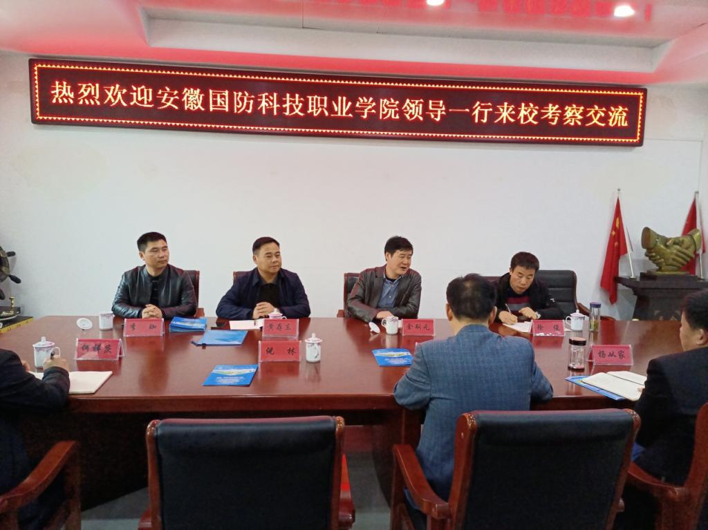 安徽霍山职业学校党总支书记、校长王荣飞主持合作办学交流研讨会,副校长杨从家、副校长倪林及相关处室负责人参加会议,王校长代表学校全体教职员工对余嗣元书记一行莅临考察表示热烈欢迎,并介绍了霍山职业学校近年来在技能大赛、校企合作、招生升学、学校规划及在中高职衔接合作等方面所取得的工作成绩。听取介绍后,余嗣元书记详细介绍了万象城体育awcsport近年来的发展情况,同时对霍山职校的办学规模、教学管理、校企合作及办学理念等给予了高度评价,对霍山职校不断为国防学院输送大量优秀毕业生表示感谢。双方表示今后将在中高职有效衔接合作方面不断探索创新,并在人才培养方案制定、专业建设、课程体系构建、技能大赛、师资队伍以及实习实训基地共享等方面开展更多实质性合作,推动中高职衔接工作再上台阶。