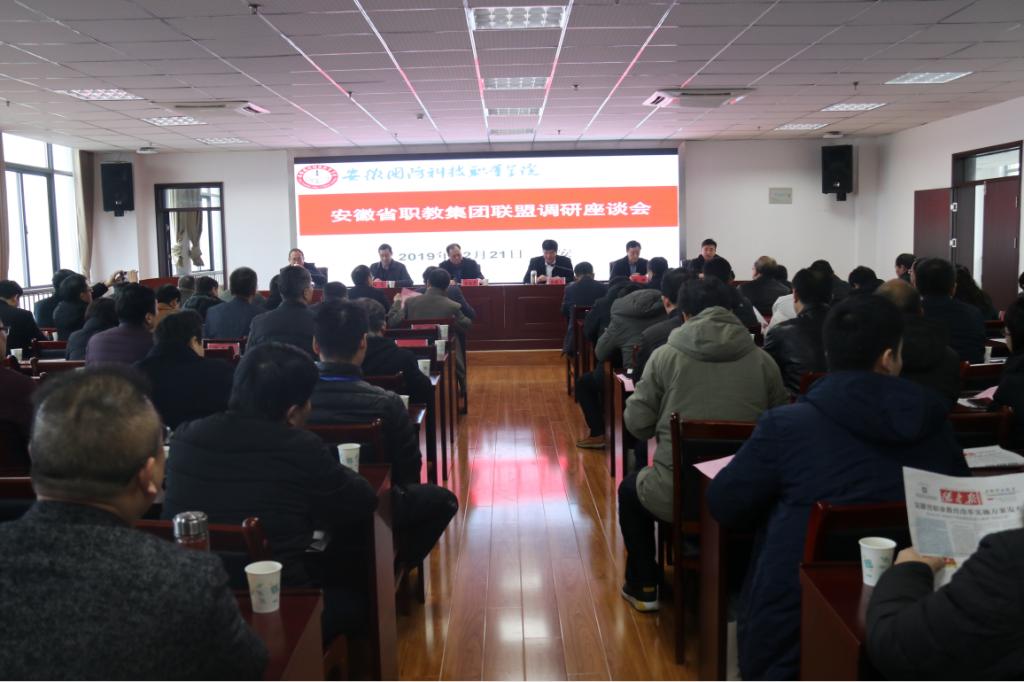 为加快构建现代化职业教育体系,集中调研校企合作暨集团化办学成果,2019年12月21上午,安徽省职教集团联盟省内调研座谈会在万象城官网召开。联盟主席、安徽城市管理职业学院党委书记杨祖涛,安徽省职业与成人教育学会秘书长、联盟秘书长崔肃,万象城体育awcsport党委书记余嗣元,六安职业技术学院院长葛向东,安徽国际商务职业学院院长张卿,安徽粮食工程职业学院院长杨光等与来自全省40多家职业院校、联盟单位和校企合作成员企业的100余位领导和嘉宾出席了座谈会。会议由联盟轮值副主席葛向东主持。