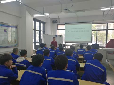 随后,徐俊老师针对车工及数控车实训进行了专门的安全培训,徐俊老师从个人着装、工量具安全使用、设备安全操作、设备维护、劳动纪律等发面进行了详细的讲解。