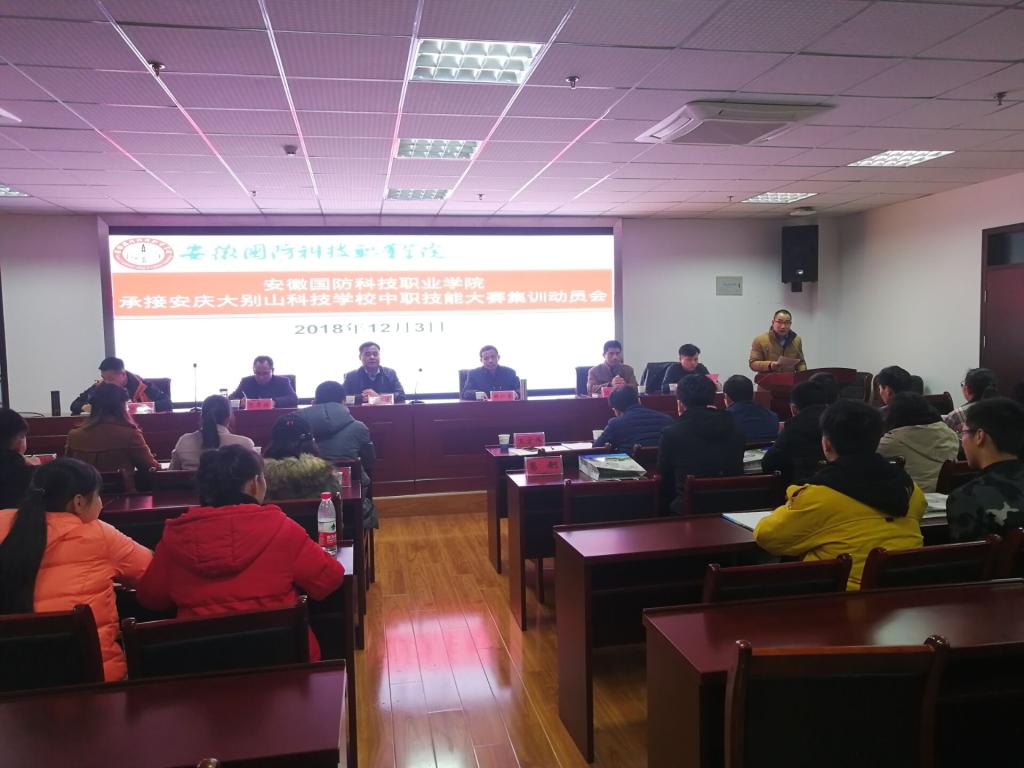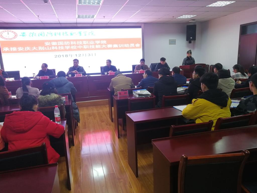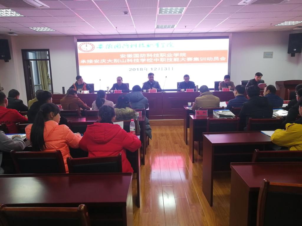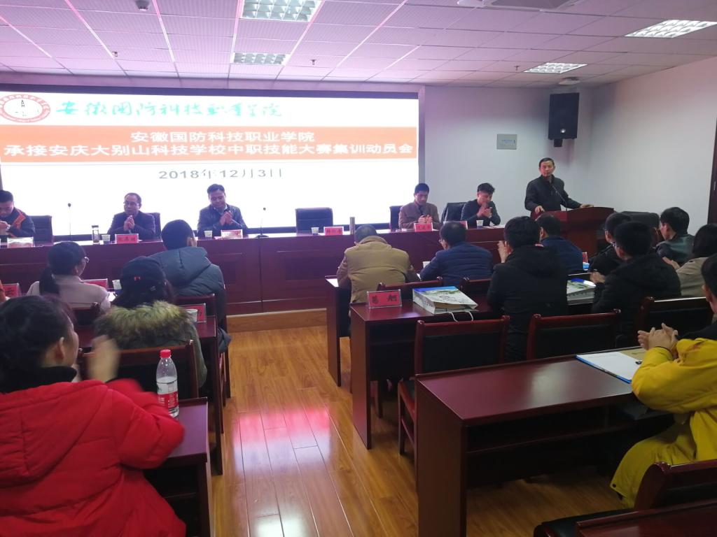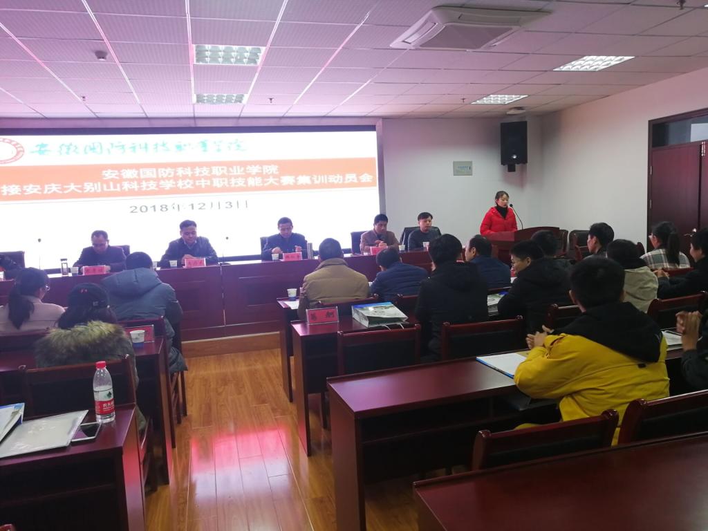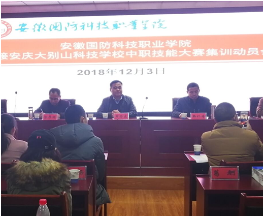 为贯彻落实安徽国防科技职业教育集团2018年度会议精神,做好安庆大别山科技学校中职技能大赛集训的承接工作,力争使安庆大别山科技学校在2018年中职技能大赛中取得优异成绩,12月3日下午,学校在综合楼12楼会议室召开了万象城体育awcsport承接安庆大别山科技学校中职技能大赛集训动员会。