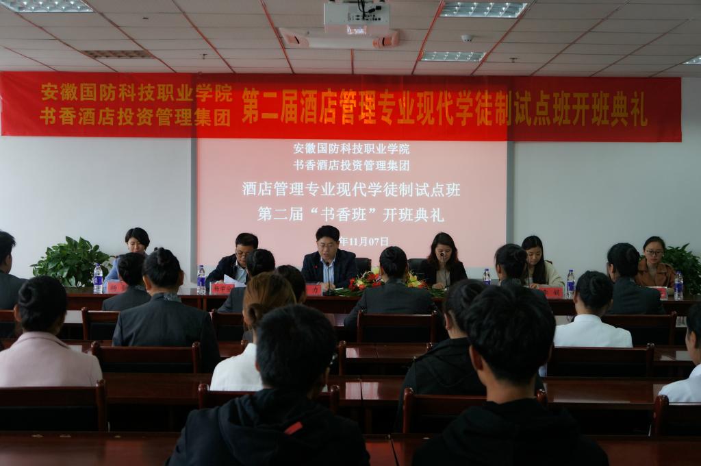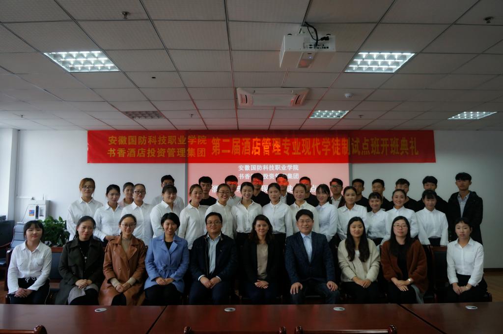 开班典礼后,经贸管理学院负责人及酒店管理专业教学团队教师与书香酒店集团领导召开了学徒制合作项目推进会。会上,双方就推进校企深度合作的具体事宜进行了商议,并就深入推进校企一体化育人机制保障,学徒制合作长远发展达成了共识。双方表示,在深化“现代学徒制”人才培养模式的基础上,校企双方合作将有更大的发展空间。