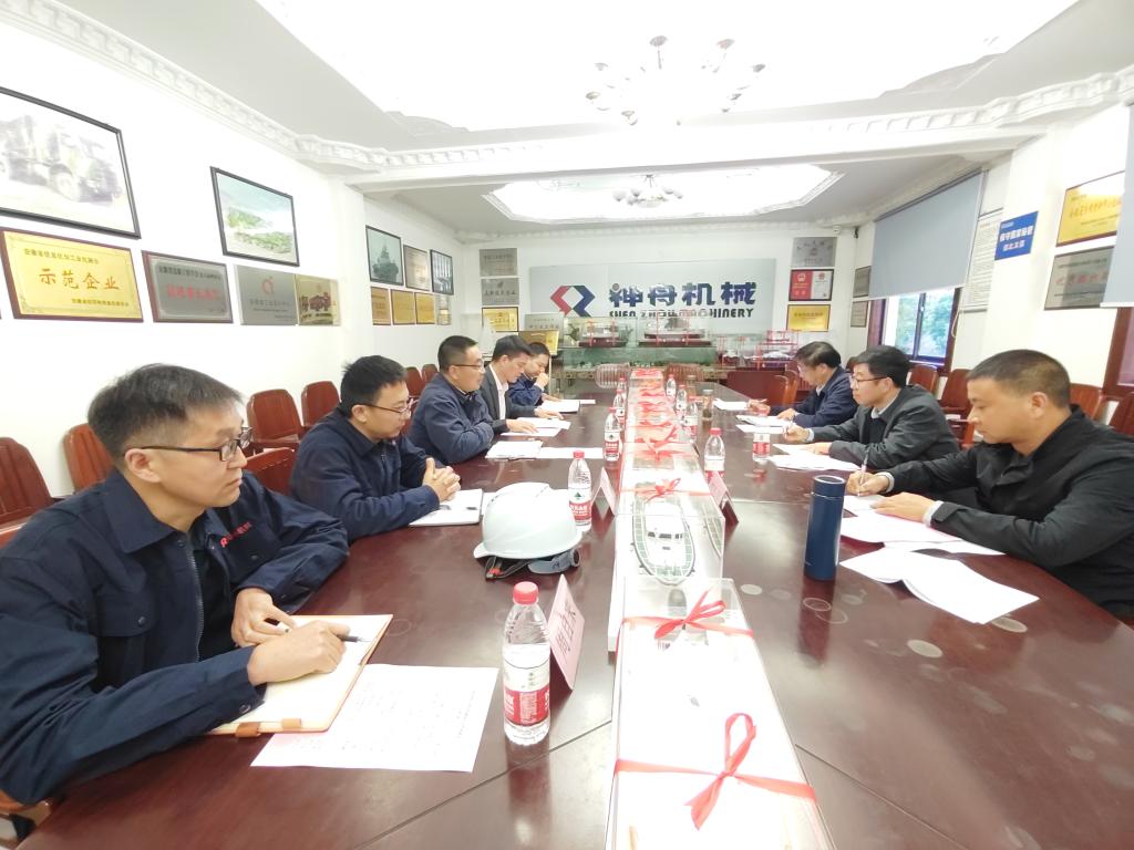 座谈会前,李存鹏一行参观了蚌埠市神舟机械有限公司厂区。现场,公司副总经理史正波对厂区规模和发展及近期主要生产项目进行了详细介绍,并对承接的学校实训船舶模型建造情况做了专题汇报。
