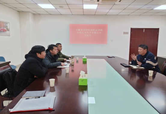 调研座谈会上,合肥长安人力资源袁部长等三家相关负责人对姜继文等一行表示热烈欢迎。袁部长介绍了合肥长安当前生产状况,详细介绍了用人需求、人才培养机制和员工生活福利状况,表达了校企深度合作的工作愿景等。姜继文介绍了学院办学规模、近几年毕业生实习和就业状况,围绕汽车类专业设置、人才培养、校企合作具体形式等相关情况进行了详细说明。