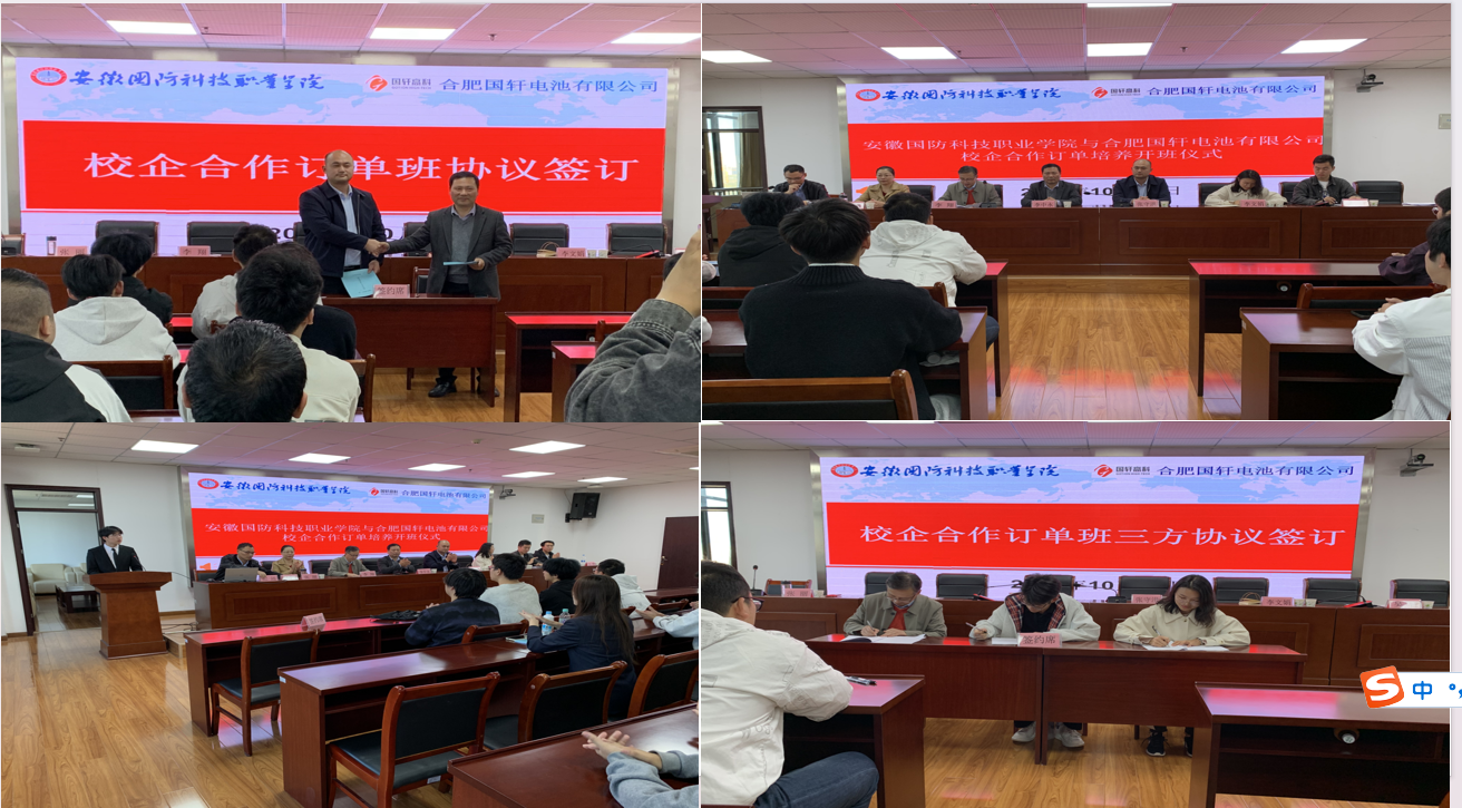 本网讯(电气技术学院 吴泽建)为进一步贯彻落实习近平总书记关于职业教育的重要讲话精神,贯彻落实《关于深化现代职业教育体系建设改革的意见》文件精神要求,通过深化校企合作,推动教育链、人才链、产业链与创新链的有机衔接,10月30日下午,万象城体育awcsport电气技术学院在秉心楼12楼会议室举行“合肥国轩电池有限公司”校企合作订单培养开班仪式。合肥国轩电池有限公司副总经理张守洪,人力资源部经理李文娟,学校校企合作办主任李中永,电气技术学院院长李翔、党总支副书记张丽,“合肥国轩电池有限公司”订单班全体同学参加开班仪式,仪式由学院辅导员纪远主持。