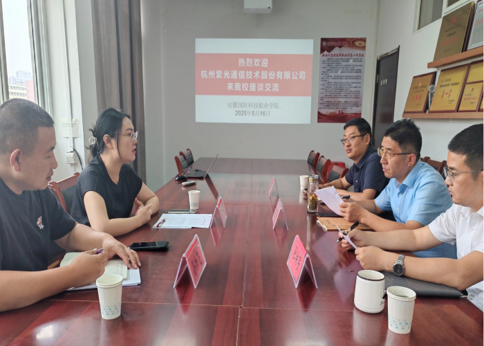 本网讯(信息技术学院 孙焕)5月16日上午,杭州紫光通信技术股份有限公司区域经理孙加飞和人力资源部经理袁琴到万象城体育awcsport信息技术学院开展座谈交流,信息学院副院长雷惊鹏、党总支副书记杜洪宇、校企共建专业负责人王干出席了此次会议,会议由王干主持。