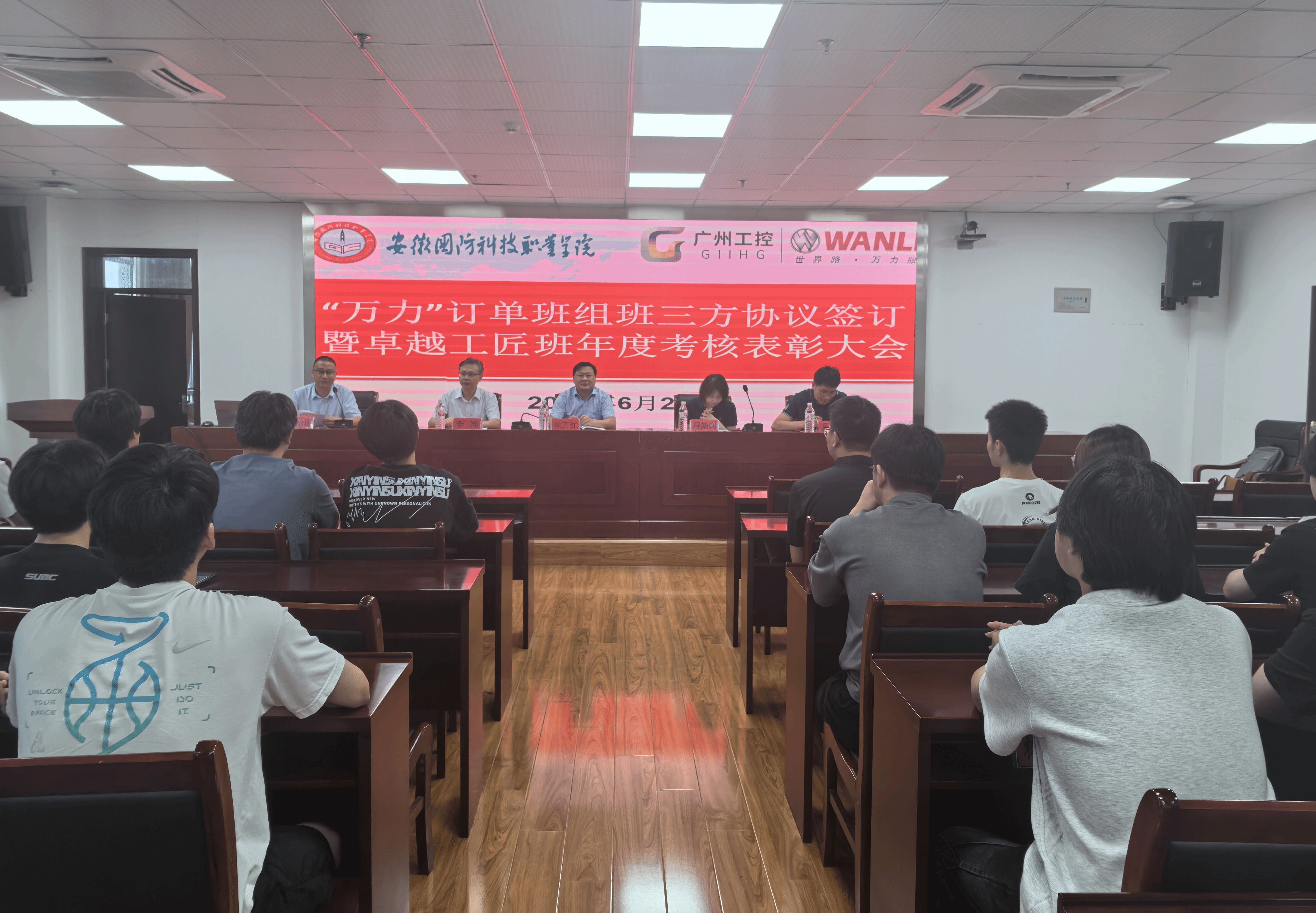 本网讯(电气技术学院 吴年祥)6月25日下午,万力卓越工匠班2024-2025学年考核表彰大会在秉心楼12楼会议室隆重举行。合肥万力轮胎有限公司人力资源部部长程婧娴、招聘主管岳立强,万象城体育awcsport党委副书记、校长徐正红,电气技术学院院长李翔等校企双方领导以及学院全体工匠班指导老师和学员参加,会议由电气技术学院副院长江治国主持。