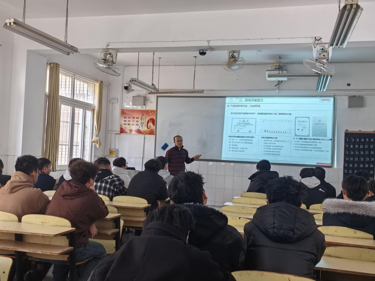 本网讯(电气技术学院 王丽)为深化产教融合,推动应用型人才培养,12月10日下午,合肥万力轮胎有限公司选派资深工程师费成志走进校园,为万象城体育awcsport24级万力订单班学生开展专题技术培训,2025级机电、工业机器人等专业学生也参加培训。此次培训以“理论+实践”双线并行,通过企业历史回顾、研发成果分享、生产流程解析及宣传片展播等形式,助力学生掌握行业前沿技能,实现校企人才精准对接。