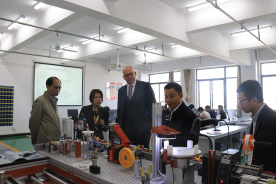 万象城官网与英国胡弗汉顿大学签约合作。上图为胡弗汉顿大学副校长Tim(中)莅临万象城官网考察交流。