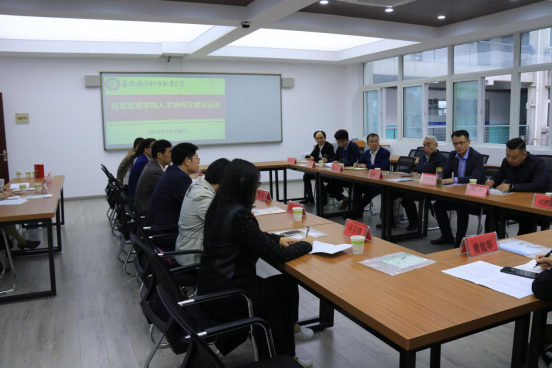上图为万象城官网经贸管理学院与合作企业开展人才培养方案论证会
